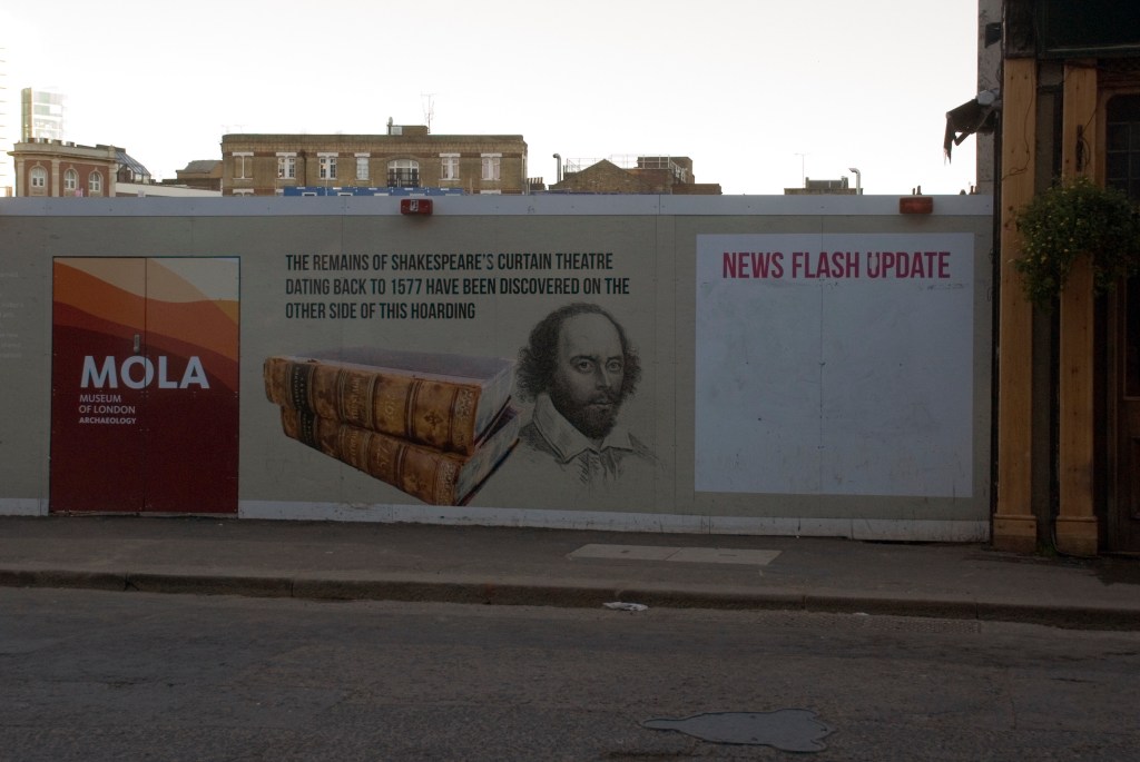In 2012, archaeologists from the Museum of London discovered the theatre’s remains beneath a site now being redeveloped as The Stage a thirty-seven-storey tower of 412 apartments; more than 400,000 square feet of office, retail and leisure space; and a ‘world-class heritage centre’. The archaeological remains will be visible in a glass enclosure.