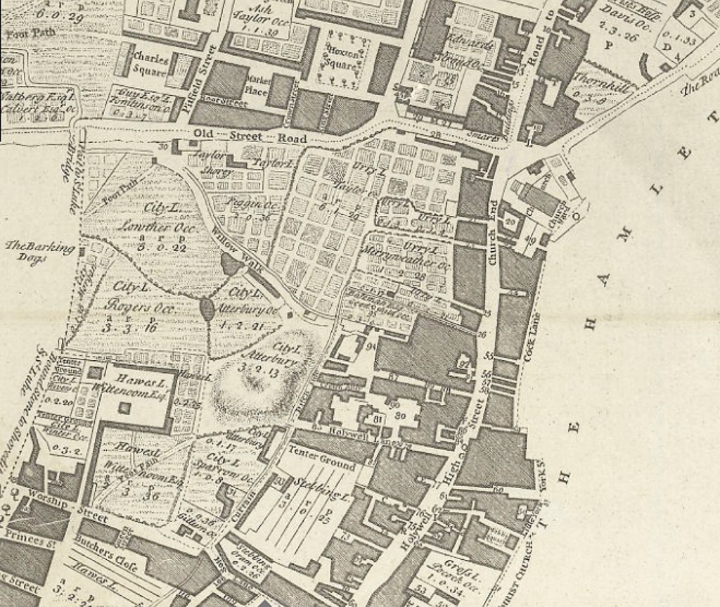 Ogilby’s ‘Road from London to Barwick’ (Berwick) passed through Shoreditch, at that time an extra-mural suburb.